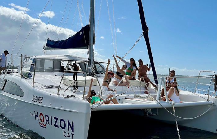 Start your afternoon at Marina Mirage, then cruise over to Wave Break Island for a few hours of swimming, paddleboarding, and games on the beach. Anchor for lunch and pop the champagne, then finish with a slow sunset cruise back past the Surfers Paradise skyline. It’s the perfect mix of fun and glam. Find your perfect party boat here.